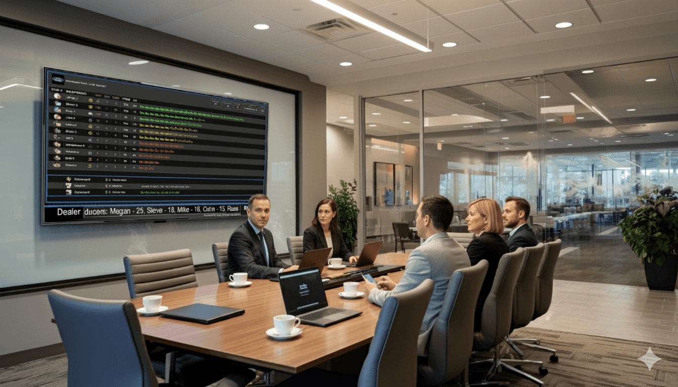 Showcase top performers in Sales, Fixed Ops, and BDC with live, rotating metrics.